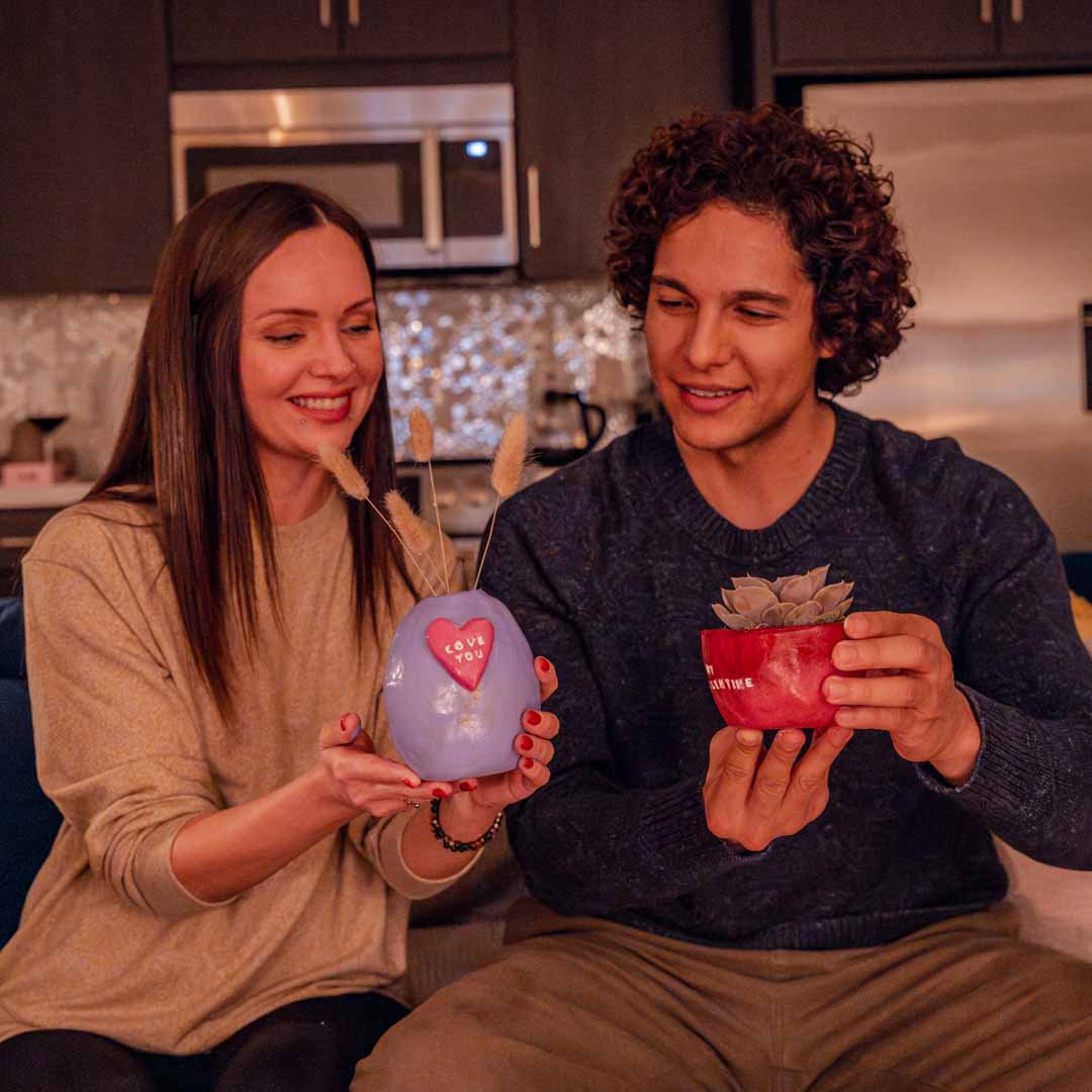 Couple sharing Halloween night with Sculpd Pottery Kit